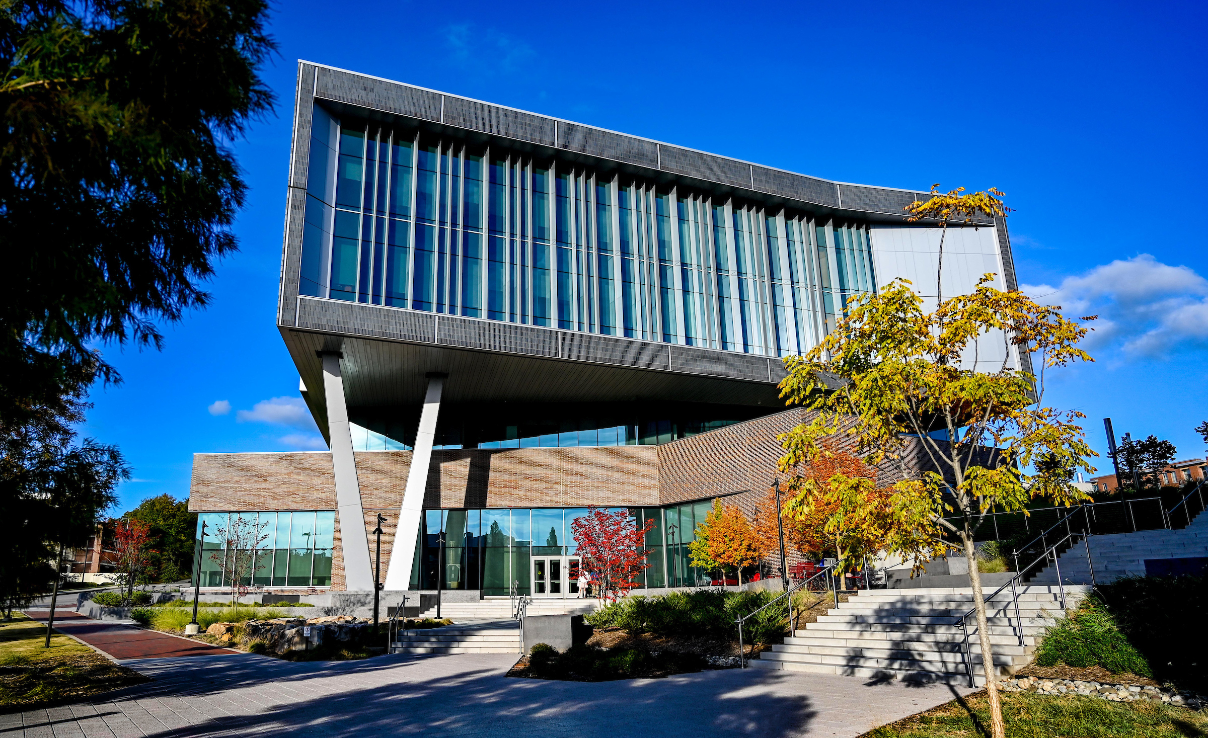 February 9, 2023 | FWH_exterior By rfortie Fall colors start to appear in October at the Fitts-Woolard Engineering building on Centennial Campus. Photo by Becky Kirkland.